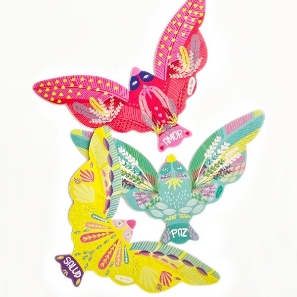 Un hermoso detalle para regalar o regalarte. Son los pajaritos equilibristas de los buenos deseos. Viene tres: salud, amor y paz.